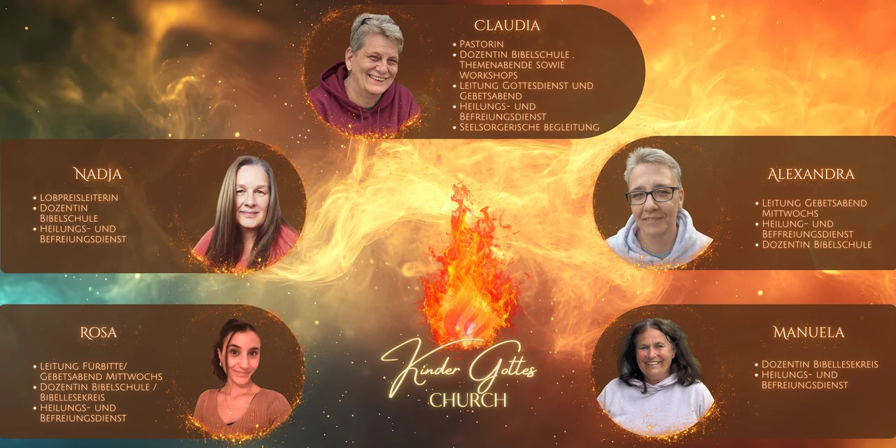 Hinter der Kinder Gottes Church steht ein Team aus treuen Dienerinnen des Allerhöchsten, die als wahrhaftige Nachfolger Jesu an mit brennenden Herzen an der Seite von Pastorin Claudia Kenngott stehen.